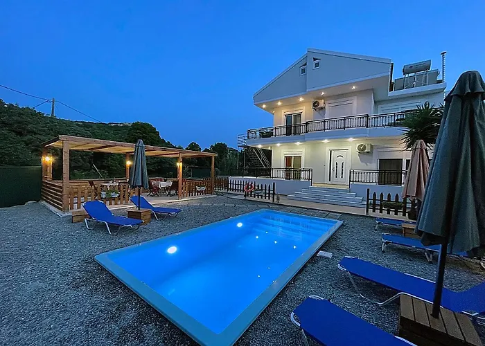 Nejbližší letiště je Mezinarodni letiste Rhodos, 10 km od vily. K dispozici je spousta rekreačních zařízení, například rovná střecha k opalování a sluneční terasa.